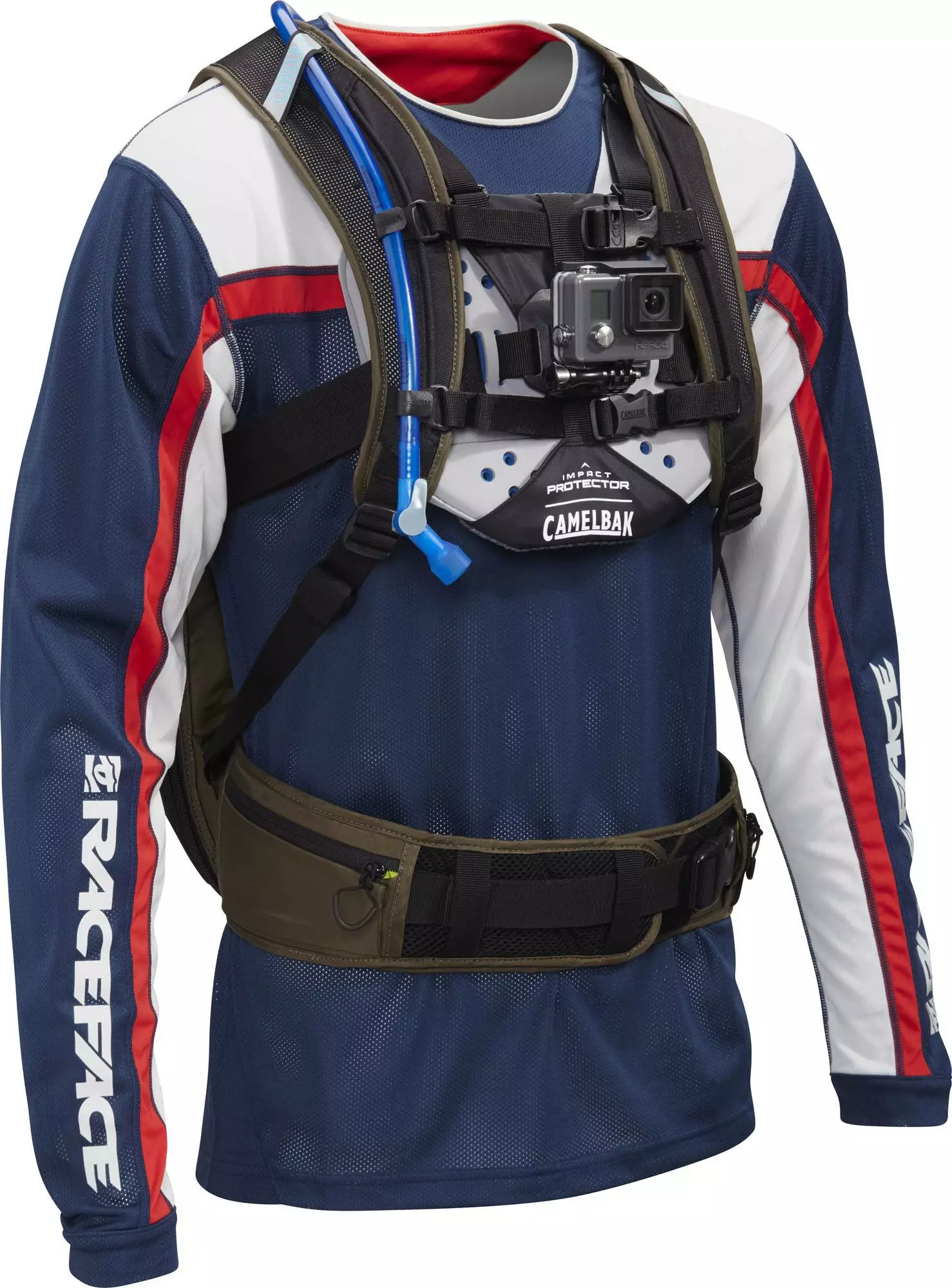 Impact Protector er selvfølgelig designet så den kan bæres sammen med en Camelbak taske.