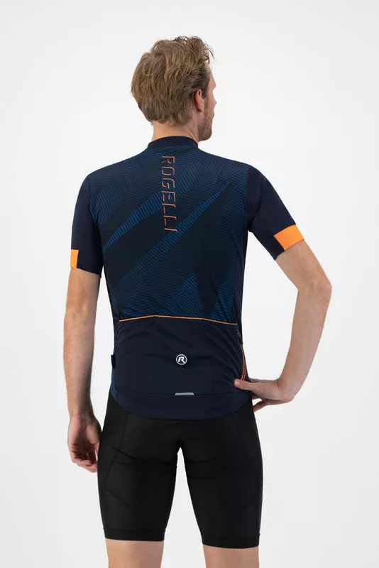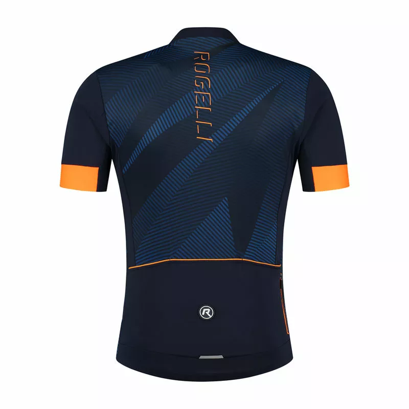 Rogelli cykeltrøje i Race Fit! Cykeltrøjen er med korte ærmer og i det åndbare Dynacool, der giver en åndbar og fleksibel tur. Der er en lang lynlås med autoblock, der giver en vindtæt cykeltrøje. Der er tre ryglommer og en ekstra lomme med lynlås. Der er silikonestrip i bunden af trøjen, så den ikke glider op under kørslen.