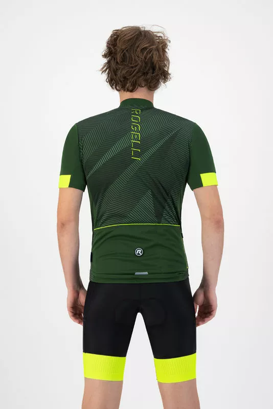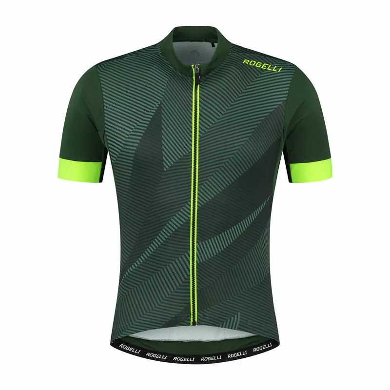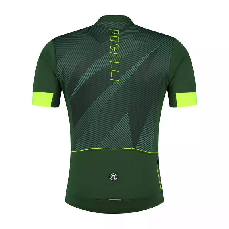 Rogelli cykeltrøje i Race Fit! Cykeltrøjen er med korte ærmer og i det åndbare Dynacool, der giver en åndbar og fleksibel tur. Der er en lang lynlås med autoblock, der giver en vindtæt cykeltrøje. Der er tre ryglommer og en ekstra lomme med lynlås. Der er silikonestrip i bunden af trøjen, så den ikke glider op under kørslen.