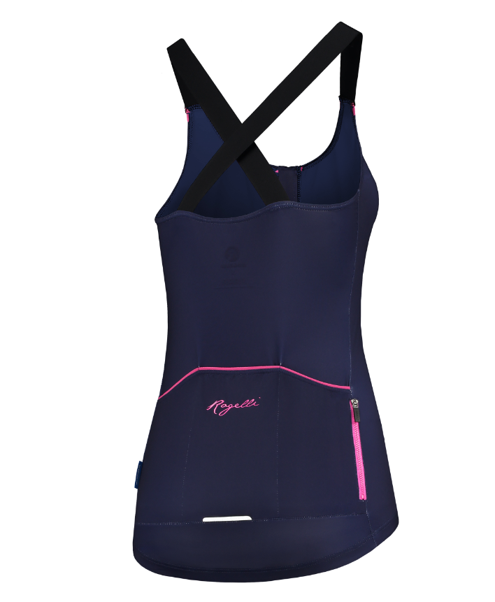 Komfortabel top til kvinder fra Rogelli. Denne top giver dig den nødvendige nødkøling i sommervarmen. Toppen er lavet i Dynaflex. Med silikonestrippen i bunden glider toppen ikke op. Toppen har 3 lommer bagpå en ekstra lomme med lyynlås, der giver dig mulighed for at have nøgler, penge eller energiprodukter med.