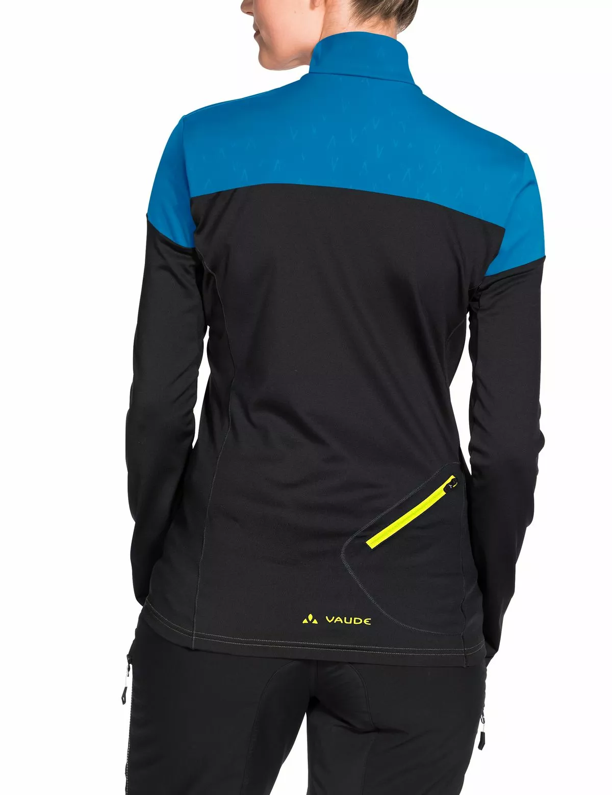 Cykeltrøje til kvinder fra Vaude som kan bruges året rundt. Trøjen har forskellige zoner hvor den er vindtæt på de udsatte steder, mens den er gjort åndbar andre steder, så man kan ånde i den i lunt og tørt vejr.